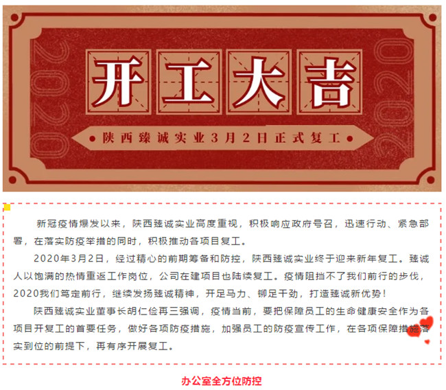 陜西臻誠實業(yè)開工啦,疫情阻擋不了我們篤定前行!