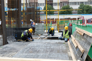 來(lái)到項(xiàng)目部,項(xiàng)目施工正處于地下負(fù)二層,中雨在前一天持續(xù)了近八個(gè)小時(shí),由于基坑空氣流動(dòng)性差,加之陽(yáng)光的直射,讓整個(gè)工作面完全處于高溫悶熱的狀態(tài)。但惡劣的條件并沒(méi)有影響建設(shè)者們的工作節(jié)奏,他們頭頂烈日,心懷責(zé)任,戰(zhàn)高溫斗酷暑,堅(jiān)守崗位保進(jìn)度。木工工人胳膊被曬得脫皮,鋼筋工人雙手在橡膠手套里泡得發(fā)白,汗水流進(jìn)眼睛……他們簡(jiǎn)單處理一下,便繼續(xù)投入到工作中。
