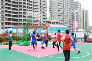籃球比賽中,轉(zhuǎn)身運(yùn)球、相互傳球、三步上籃、精準(zhǔn)進(jìn)球……這一系列連貫的動(dòng)作,還有啦啦隊(duì)的歡呼聲,不止在專業(yè)的籃球比賽場(chǎng)上能夠看到,也可以出現(xiàn)在建筑工地的運(yùn)動(dòng)場(chǎng)上。兩隊(duì)球員的精彩對(duì)抗,贏得了現(xiàn)場(chǎng)觀眾的陣陣掌聲。比賽結(jié)束,紅隊(duì)?wèi){借33:24的9分優(yōu)勢(shì)獲得勝利。