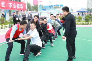 在趣味運(yùn)動(dòng)環(huán)節(jié),看著熱鬧的運(yùn)動(dòng)場(chǎng)面,公司高層管理者們也紛紛摩拳擦掌躍躍欲試。或是集體跳大繩,大家輕盈自在地穿梭于來回?cái)[動(dòng)的跳繩之間;或是以默契配合完成的背靠背夾球跑;或是重溫童年記憶,推著鐵環(huán)輕松地穿越障礙物……,多樣的趣味項(xiàng)目在比賽的同時(shí)也為運(yùn)動(dòng)員們帶來了歡樂。作為整場(chǎng)運(yùn)動(dòng)會(huì)的“壓軸”項(xiàng)目,拔河比賽在各自隊(duì)長的指揮和啦啦隊(duì)的吶喊聲中激烈進(jìn)行,隊(duì)員們團(tuán)結(jié)協(xié)作、拼搏奮斗,堅(jiān)持不放棄,最后,由安總帶領(lǐng)的團(tuán)隊(duì)獲得了比賽的勝利。