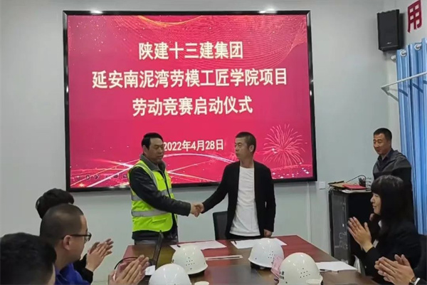 4月28日,公司延安南泥灣勞模工匠學(xué)院項目勞動競賽啟動儀式隆重舉行,項目經(jīng)理熊義喜代表陜西日升建筑勞務(wù)有限責任公司簽訂了《目標考核責任書》。