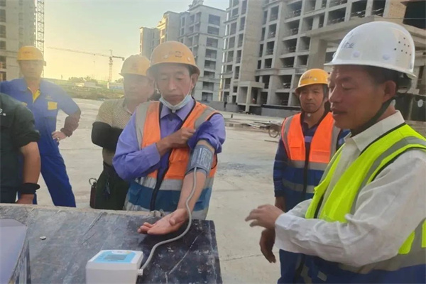 近日,西安市氣象臺連續(xù)發(fā)布多個高溫預警信息,持續(xù)的高溫會使人感到不適,容易引發(fā)中暑、腸道疾病和心腦血管疾病等,為避免項目工人因高溫天氣引發(fā)的高血壓,掌握大家的身體健康狀況,臻誠實業(yè)集團各項目分別配備血壓儀,針對重點人群、特殊崗位人員隨時進行血壓監(jiān)測并建立臺賬,及時發(fā)現(xiàn)血壓異常問題,安排員工立即停止工作并及時就醫(yī),為員工的健康保駕護航。