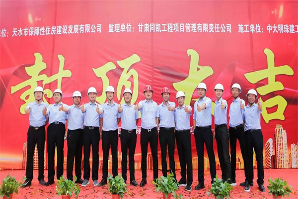 上午9時(shí)58分,封頂儀式隆重舉行,項(xiàng)目建設(shè)單位天水市保障性住房建設(shè)發(fā)展有限公司、施工單位中大明珠建工有限公司、監(jiān)理單位甘肅同凱工程項(xiàng)目管理有限責(zé)任公司等參建單位領(lǐng)導(dǎo),陜西日升建筑勞務(wù)有限責(zé)任公司東團(tuán)莊項(xiàng)目項(xiàng)目經(jīng)理徐德峰、項(xiàng)目部管理人員共同參加封頂儀式,見證這一激動(dòng)人心的時(shí)刻。