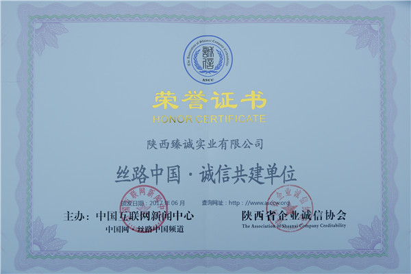 陜西臻誠(chéng)實(shí)業(yè)集團(tuán)有限公司榮譽(yù)證書